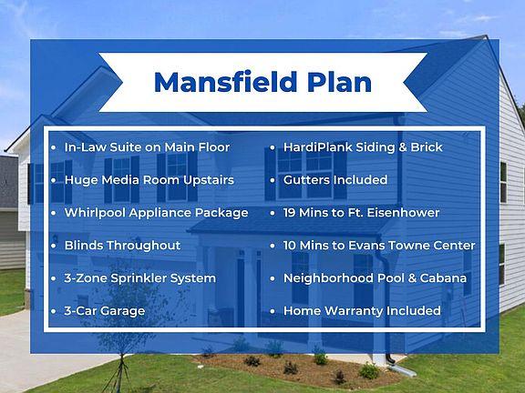 EXCEPTIONAL SELLER PAID RATE BUY DOWN INCENTIVES ON THIS HOME PLUS 6,000.00 IN CLOSING COST CONTRIBUTION WITH PREFERRED LENDER. Welcome to Southwind Village conveniently located in the Evans! Indulge in luxury living with the Mansfield, a sprawling 5-bedroom, 4.5-bathroom PLUS recreation room retreat spanning 3,481 square feet. Appreciate the practicality of a 3-car garage and the inviting allure of an open concept layout. Upstairs, a spacious recreation room offers versatility while downstairs, an in-law suite adds flexibility and comfort. The heart of the home is a large kitchen boasting an oversized island, perfect for gatherings, complemented by the warmth of a gas fireplace. Unlock the potential of this home with its spacious unfinished basement - a blank canvas just waiting for your personal touch. Enjoy the benefits of a swim community featuring a neighborhood pool, creating an ideal balance of comfort and community in this prime Evans location. PHOTOS ARE OF ACTUAL HOME. Home and community information, including pricing, included features, terms, availability and amenities, are subject to change and prior sale at any time without notice or obligation. Square footages are approximate. Pictures, photographs, colors, features, and sizes are for illustration purposes only and will vary from the homes as built. D.R. Horton is an equal housing opportunity builder.