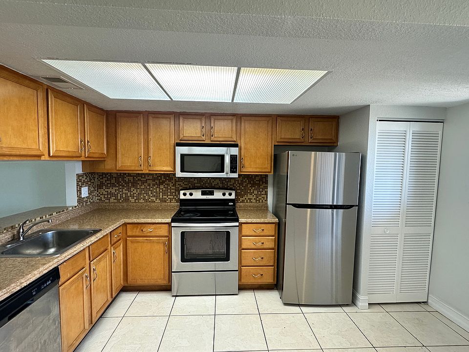 Freshly painted apartment with stainless steel appliances. Pool in apartment complex. First floor unit
