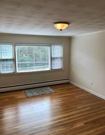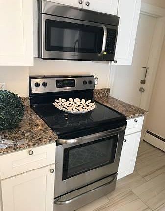 2 Bedroom beautifully renovated apartment with hardwood floors throughout. This modern large kitchen features gorgeous granite counters and new stainless steel appliances with lots of space for cooking and entertaining! Private deck off kitchen and off-street parking. Laundry in the basement. Excellent closet space! Convenient location close to public transportation, highways, Dedham Mall and Legacy Place. No smoking On 2nd Floor. Water/ Sewer