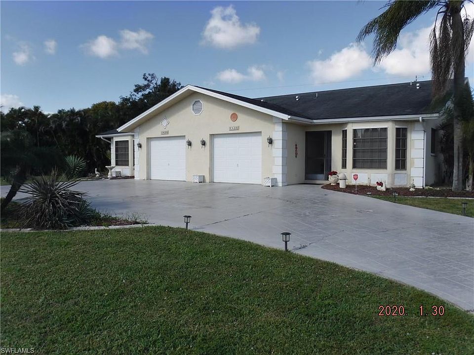 Centrally located duplex, both sides rented month-to month. NEW ROOF being installed. Oversized corner lot with quick access to downtown Cape Coral and local shopping and dining. Each side has 2 bedrooms, 2 full baths and a Florida room as well as 1 car garage. In-ground pool not shared between units. All assessments in and paid.