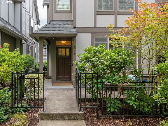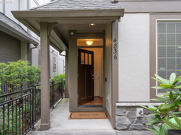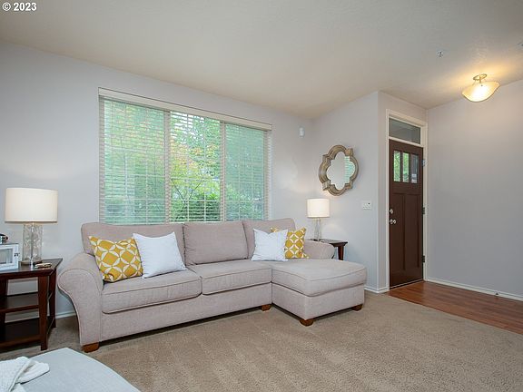 OPEN SAT 10am - Noon. Beat the heat + enjoy some coffee! The BEST location in this gorgeous community of Northwest Craftsman townhomes! Inviting community with sidewalks, beautiful mature landscape, and nestled in a primo NW Portland/Bethany location next to shopping, coffee, restaurants & athletic club. You are greeted by a welcoming covered porch, plus landscaped & fenced patio area; perfect for outdoor living and a secure place for pets. Step into the spacious great room with fireplace, and abundant windows with views of greenery. The great room layout is a comfortable retreat, and also a fantastic entertaining space. Cool summers with A/C. Easy winter warmth with fireplace. Immaculate kitchen with natural oak cabinets, stainless appliances, and a huge pantry. Three generous bedrooms upstairs. The upstairs landing/flex space is a perfect reading or office nook. The primary suite with an en-suite bathroom has double sinks and walk-in closet. Convenient upstairs laundry! The attached 2-car garage with alley access - room for car(s) plus great storage. Every inch of this townhome is useful and well designed. The gorgeous surroundings, close proximity to everything you need, and easy care outdoor space make this an ideal home. Available to you just in time for summer, come check out your quiet new place to sip your morning coffee while listening to the birds, or host a summer alfresco dinner under the canopy of trees! (Current HOA dues are $284/month, however the proactive HOA is planning for siding, roofing and exterior maintenance through a dues increase. Per HOA: no litigation, no assessment. The $500/mo HOA advertised in listing is the estimated amount being discussed by management; it is approximate, management is working to finalize new HOA dues as soon as October.)