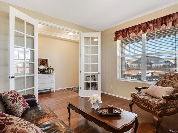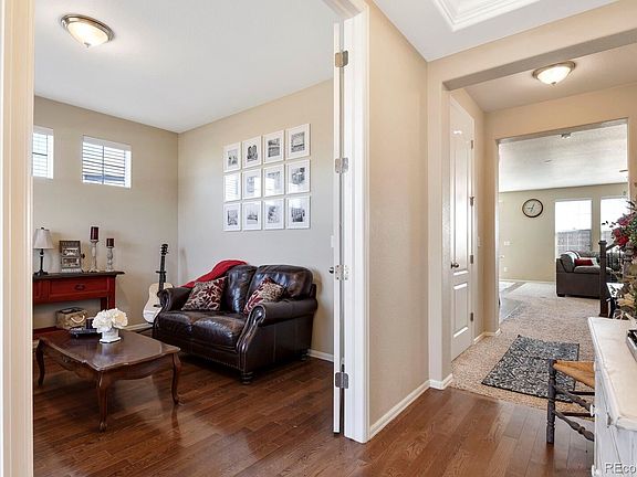 This beautiful Belmont Model by Lennar in the highly desirable Copperleaf Neighborhood is located in the award winning Cherry Creek School district. The foyer entry is complete with coat closet and offers access to a perfect office/flex room space. The fabulous kitchen features a magnificent walk in pantry, gas stove, brand new dishwasher and is open to the family room which has a lovely gas fireplace and is wired for surround sound. The convenient main floor guest room is accompanied by a full main floor guest bath. The garage entry offers an additional coat closet and key drop countertop. Upstairs you will find 4 more bedrooms. The master suite includes a luxurious 5 piece bath including private powder room, and very large walk in closet. The three additional bedrooms all include walk in closets and ceiling fans. One bedroom is a junior suite with private full bath. The hallway bathroom shared by 2 additional bedrooms has a private powder room and double sink vanity. Situated on one of the largest lots, providing a generous backyard including an attached storage shed and wrap around concrete patio. No neighbors in front or back! Plenty of parking space along the street. Going green with installed solar panels will keep your electric bill low. Check out the 3D tour and schedule your showing today!