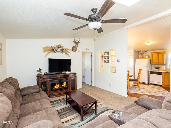 Priced to sell! This darling home is move-in ready and awaiting the next lucky new owners. Pride of ownership is apparent as you stroll through the property. Both the exterior and interior have recently been painted along with new skirting around the base of the home. Fully fenced backyard complete with a storage shed plus a separate dog run. Abundant planting beds are ready for a gardeners green thumb. Walking distance to Mt. Elden with access to many hiking trails and just minutes to Flagstaff Market Place along with Harkins Movie Theater. This home also comes complete with a Swann video surveillance system with the capability to monitor things while your away. Schedule your personal showing today as this rare opportunity won't last long!