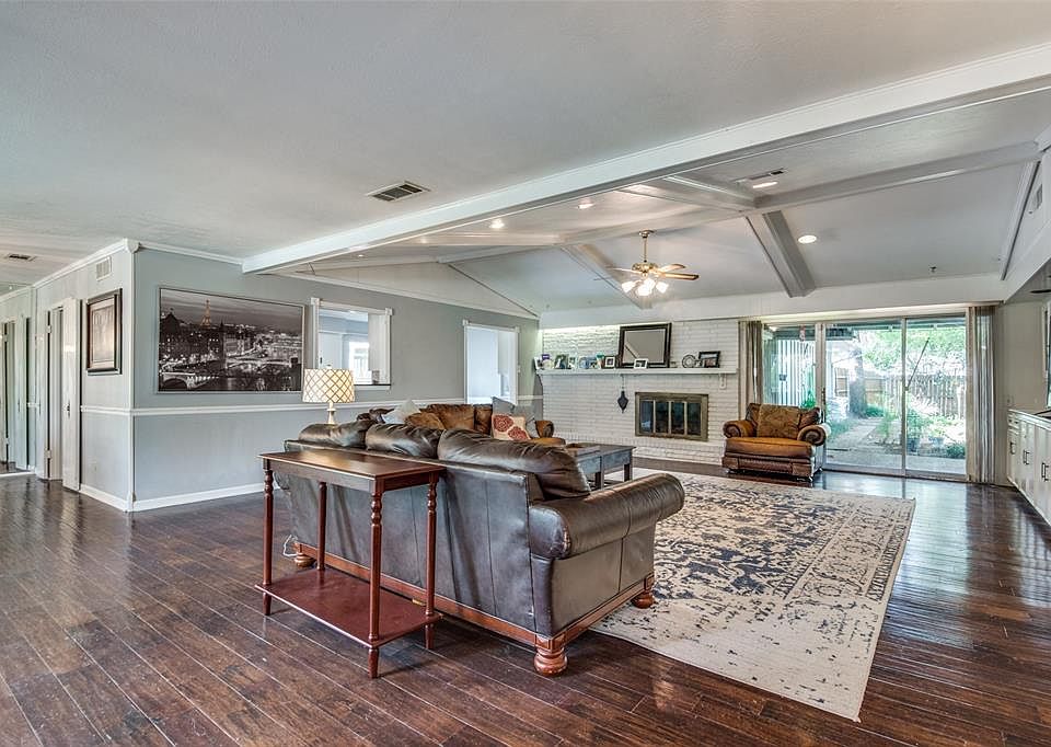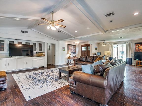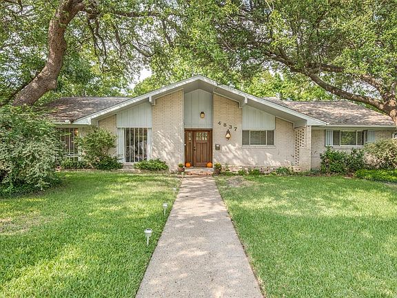 Perfect opportunity to own this contemporary home! Oversized den is open to both the spacious living room and dining room, and has wood flooring,vaulted ceiling, built ins and fireplace. Large kitchen with stainless steel appliances including double oven,dishwasher and built in microwave.Breakfast room overlooks a nice patio. Split bedroom with full bath. Large master bedroom with two WIC's. 2 other bedrooms with Jack and Jill bath. Separate utility room.Towering trees grace the front and pool size back yard with fun treehouse! Roof and gutters,garage door replaced 2020.Exterior painting in 2020. Wonderful neighborhood within walking distance to St. Rita, Jesuit and Nathan Adams. Come make this home your own!