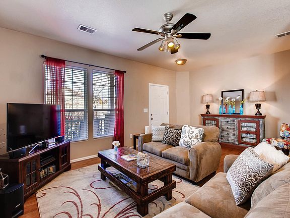 Upgraded townhome (end unit!) in popular Soaring Eagles. Open-concept main level boasts engineered hardwood throughout living, dining, kitchen & office nook! Walk out to fenced patio area w/ample entertainment space & access to detached 2-car garage. Upstairs find master bedroom w/vaulted ceilings, 5-piece master bath & walk-in closet. 2 add'l bedrooms, full bath & laundry closet round out the space. Conveniently located to military bases, shopping, schools, I-25 & more. This low-maintenance home is a must-see!