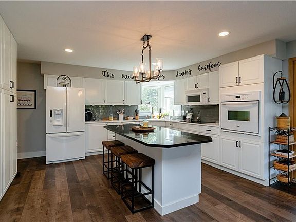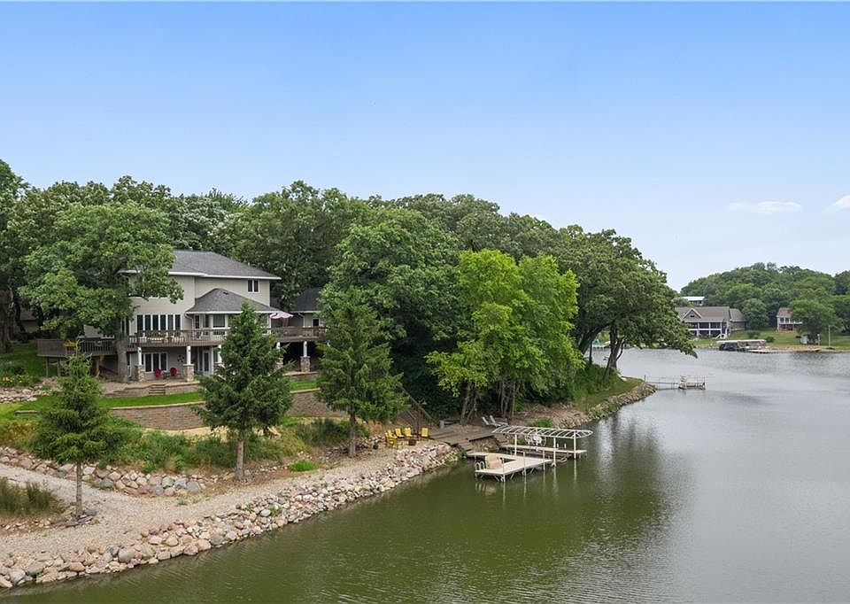 Welcome to paradise! The perfect lake home with everything you could want. Walk into the beautifully appointed 1st floor and be amazed at the finishes in this open floor plan. Large dining room, gourmet kitchen and spacious family room. Throughout the home there is a lake view from the many windows. There is virtually nowhere in this home that you can not see the lake. The L.L. is stunningly finished with a beautiful wet bar, surround sound and a wind cellar built into the space under the stairs. Also plenty of room to put either a giant craft room or exercise room and still have plenty of space for storage. From the 4 season room or the screened in patio you can enjoy all the beautiful views of the lake and of this newly professionally landscaped yard or walk to the t dock, boat lift & jet ski lift, which does not have to be removed for the winter months. These also have floating steps for when it comes time to level the docks and lifts.