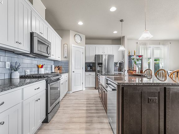 PRIMARY BEDROOM ON MAIN FLOOR! One level living. The only thing upstairs is a bonus room/office/possible 4th Bedroom. 3 car garage. Sought after community of Discovery Ridge just a few minutes to I-5, new Costco & downtown Ridgefield. Sellers say they have the most wonderful neighbors! Great room concept has surround sound speakers, upgraded laminate floors in majority of home. 9' ceilings on main, gas fireplace w/tile surround. Chefs kitchen boasts approx. 5x9 island w/farm sink, slab counters, full height subway tile backsplash, walk in pantry & gas cooking! Nice sized dining area adjacent to kitchen w/door to partially covered patio & perfectly landscaped & fenced yard w/storage shed, playset for kids & concrete walkway around entire garage side of home. AC, tankless water heater, HRV system for cleaner/healthier air, inground sprinkler system. Primary bathroom w/tile floors, double sinks, tile counters & soaking tub + separate shower w/glass door. One walk in closet +_one regular closet in primary BR. Laundry room w/deep sink. Beautiful barn door seals off the upper level from the main level. Hall bathroom boasts tile floors & counters & double sinks. Full exterior freshly painted 2024. Wiring for speakers in upper level room. This home has been lovingly cared for & overflows w/pride in ownership.