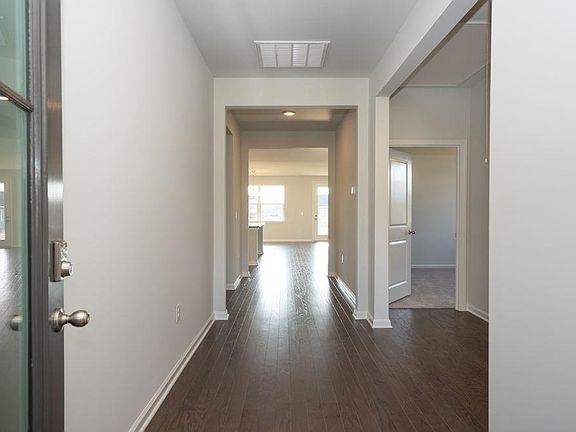 This Acadia plan with craftsman style exterior and masonry accent, features a large foyer for a grand entrance. Spacious kitchen with granite countertops, pendant lights over the island, stainless steel appliances, and a large walk- in pantry. The working island with breakfast bar is great for cooking as well as entertaining. The kitchen is open to the dining room and extended living room and has plenty of space for everyone to gather around. Owner's suite is in the back of the home and offers a large master bath with a 5' walk-in-shower, double vanity, and linen closet. *Photos are of a similar Acadia floorplan. (Home and community information, including pricing, included features, terms, availability and amenities, are subject to change prior to sale at any time without notice or obligation. Square footages are approximate. Pictures, photographs, colors, features, and sizes are for illustration purposes only and will vary from the homes as built. Equal housing opportunity builder.)