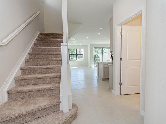 Beautiful new construction in gated community ''NEVER LIVED IN'' just completed 2022. The beautiful rare end unit townhome features 3 bedrooms, 2.5 baths, 2 car garage, all impact windows and doors, quartz countertops, gorgeous backsplash, 24x24 porcelain tile flooring on 1st floor and laundry room with sink. Light and bright with no one on one side of you. Large private grassy area in the rear. Amenities include community pool, clubhouse, fitness center and activity room. This is a must see!!