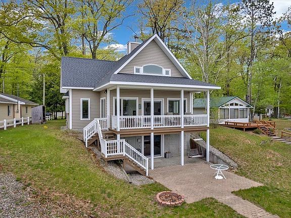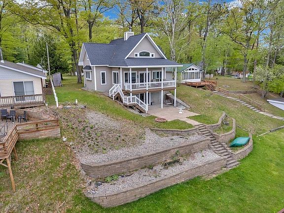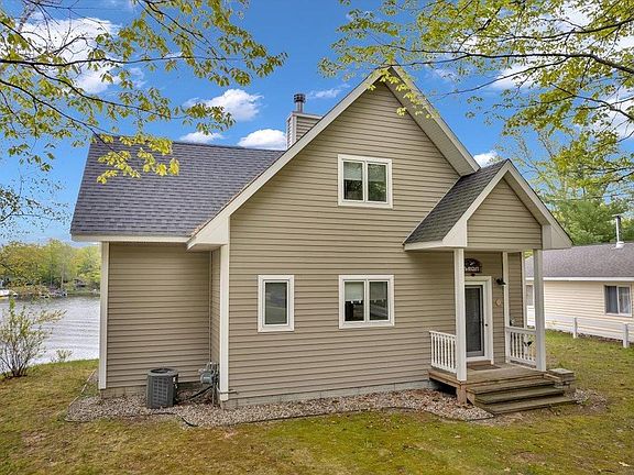 This a is a beauty! almost new home! Beautifull all sports long lake is location for this jewel on the water! 70! ft of swimming beach level area all across water at lot! private dead end rd ! trees galore and wildlife yet beautiful lake living year round home! 2/3 br, 2 bath.utility, large bath main floor,. plus bath upstairs. utility! natural wood fireplace, glass all around in liv rm and dining area/kitchen, provide a wow view! this is a must see! decking, patio, walk out basement for storage and maybe to finish? so many possibilities with this poured wall walk out basement! converted to nat gas, furnace only 2 years old, shingles about 6 years old, great windows!, central a/c so many updates, 5in submersible well! code septic system. maint free vinyl exterior.should be plenty of room to build a garage! dramatic cathedral/ vaulted ceilings! did i mention the view! for weekends and vacations or full time living, this is the one!