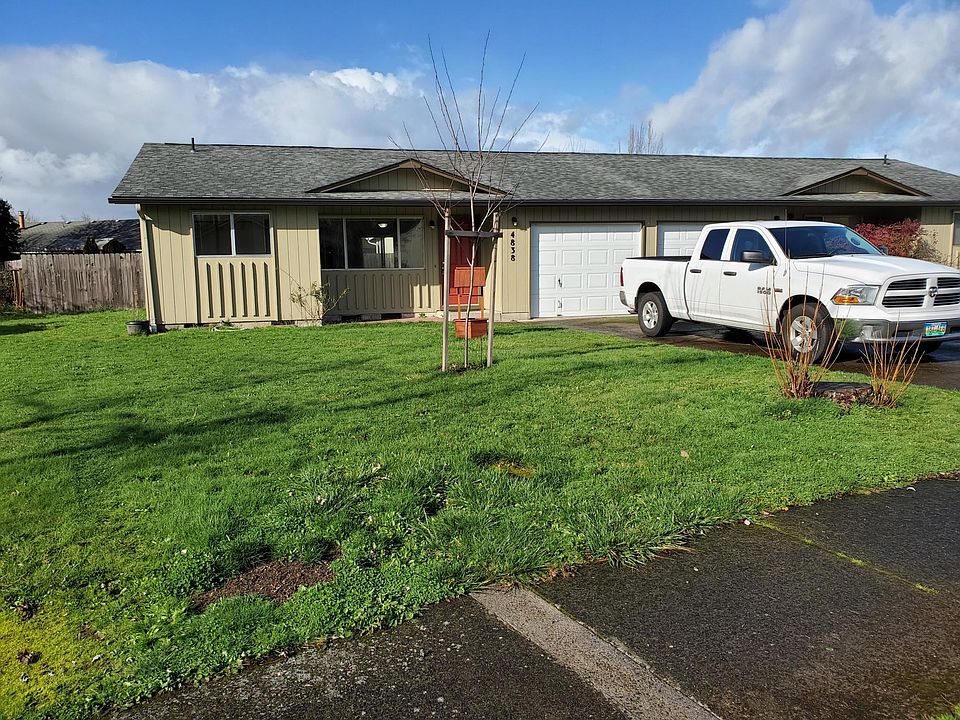 4838 Elderberry Loop is a single-level (no stairs!) duplex on a low-traffic loop in east Springfield. The home has two bedrooms and a single full bathroom. There is vinyl plank flooring throughout the home. The kitchen has a stove, refrigerator and dishwasher. There is an attached single-car garage with hookups for a washer and dryer. There is a fenced backyard with a patio as well as grassy front yard. Resident is responsible for all utilities and yardcare. This duplex rents for $1,295 month-to-month. Basic security deposit is $1,500 fully refundable. There is a $60 per applicant screening fee. I am looking for GREAT residents! .Is that you? I strive to be a GREAT landlord .I can provide references! Many of my residents have been with me for 10 years plus. I run a small operation, and know my customers by name. I stay up on the laws thanks to my involvement with the Oreogon Rental Housing Association. What is a GREAT resident? Deals honestly, in good faith. Keeps it a business relationship, but a friendly one. Takes reasonable care of the home and make s good choices. Gets along with neighbors. Follows the rules and terms of the contract. Accountable for following their responsibilities. Oh, I almost forgot, pays the rent on time! Note: this home was built in 1975 and as such the EPA requires that we give information about lead-based paint which is required for all homes built 1978 or prior. You likely have seen this pamphlet before. We have always used latex (non-lead paint) and to the best of our knowledge there is not any lead paint on the home. But, we have not had official testing done (very expensive) so, we will be providing the lead paint booklet to comply with federal laws. Home is currently vacant and will be available about Febuary 15th. Terms & Conditions. Resident pays for all utilities (water, sewer, electric and trash). Resident is responsible for maintaining the front and back yard. Resident shall maintain renter's insurance in the amount of at least $100,000 per occurrence is required for this property. (some limitations) No storage of travel trailers, motorhomes, utility trailers, commercially marked vehicles, campers etc. is allowed on-site. If you have vehicles other than standard cars and pickups and/or you intend on parking in spots other than the garage or driveway, please disclose at time of application to rent. Free-standing basketball hoops, swimming pools, trampolines, swing sets are not permitted. All vehicles of residents and their guests must have functioning Original Equipment Manufacturer exhaust systems. No smoking allowed in the home or garage. Considerate smoking is allowed outside so long as it does not disturb the neighboring residents. Satellite dishes may be a allowed subject to compliance with mounting an installation restrictions. Animals: Pets are allowed in select homes subject to prior management approval. Additional pet rent of $25 per month and additional security deposit of $500 required for keeping pets. Cats are to be kept indoors only. Dogs: Friendly dogs measuring 15-inches and less at the shoulder may be allowed. Dogs are to be kept indoors. Dogs may be allowed in resident's back yards so long as resident is present. Dogs are to be on leash and under the resident's control any time they are in common areas. (Non-pet animals subject to ADA /HUD rules may be allowed subject to documentation and approval of valid Reasonable Accommodation Request.)