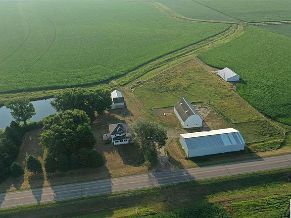 UPDATED ACREAGE. 4.12 ACRES. 5 BED. 3 BATH. GREAT LOCATION. This two-story acreage, with over 4 acres of property, sits just a couple miles from city limits. Reap all of the benefits of country life, yet have the conveniences of town. The property has a picturesque view with a man-made pond off in the distance on the neighboring property. The back patio is perfect for entertaining guests and watching activities in the back yard. With a pasture and several out buildings, this acreage will appeal to many. The machine shed features new doors and is currently being leased to various people ($800 yearly). There's a shop section in this building as well. The barn contains stables and is in very good condition. The fencing around the barn is included as well as the automatic livestock waterer. The grainery shed features a loft and lean-to. An acreage that has been loved and meticulously cared for in every aspect! Stepping into this two-story farmhouse, the finishes are stunning! A newly remodeled kitchen, featuring white custom cabinetry, hardwood floors that have been refinished, granite countertops, and a breakfast island that is sure to be the gathering place. The beautiful kitchen looks into the dining room, also featuring refurbished hardwood floors. Access to the front covered porch can also be found here. You will feel the spaciousness of this home with the 9' ceilings. The living room sits right off of the dining which then leads to the main floor bedroom, featuring an en-suite half bath. This space could also be used for an office. Four good-sized bedrooms can be found upstairs, one of which has balcony access. All bedrooms have been nicely updated and feature spacious closets. A beautifully renovated full bathroom rounds out the second story. The dry basement has great potential to add more finished space. It currently has an updated 3/4 bathroom with a walk-in closet for great storage. The laundry is also located in the basement.