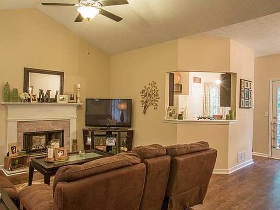 Cute, move-in-ready home w open floor plan & rocking chair front porch in Lake Park S/D. Prized cul-de-sac lot w private backyard & updated landscaping. New HVAC. Spacious bedrooms. Master has trey ceiling. Garden tub in master bath. Additional pantry storage added. New hardwood flooring on main level. Updated: kitchen & bath cabinets, new hardware on all cabinets, kitchen counter, new faucets in kitchen & bathrooms, new vanity in half bath, 2 new toilets, new ceiling fan & light kit in living room, and new closet doors to laundry room. Your new home awaits you!