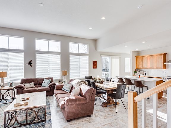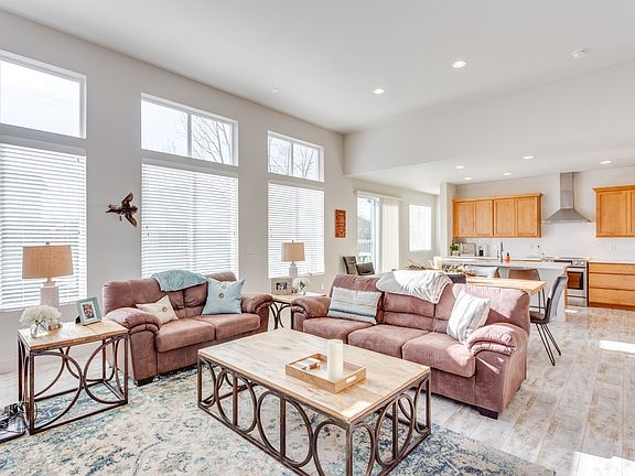 Beautiful newer construction modern farmhouse with elevated ceilings and filled with natural light! As you enter the main level an open concept greets you, spanning the living room, dining room and luxurious kitchen which features high-end oak cabinets, quartz countertops, a large center island with bar seating and upscale stainless steel appliances. Continuing past the kitchen you will find a large pantry, powder room and laundry room/mudroom connecting to the oversized 2 car garage. The second level provides two bedrooms sharing a jack and jill bathroom and a spacious master suite complete with a large walk-in closet and a grand bathroom featuring a walk-in tile shower and double sinks. Downstairs you will find a large unfinished basement with high ceilings, perfect for adding another bedroom, bathroom, and family room. This home has a high-efficiency AC & furnace. The $135 quarterly HOA fees include a clubhouse, pool, fitness center, park, playground, recycling, and trash removal! Don't miss this opportunity to own in Brighton Crossings close to shops and restaurants with easy access to DIA!