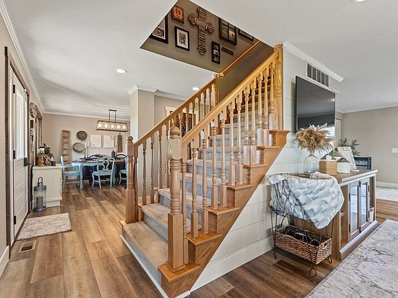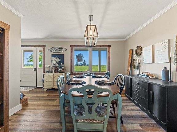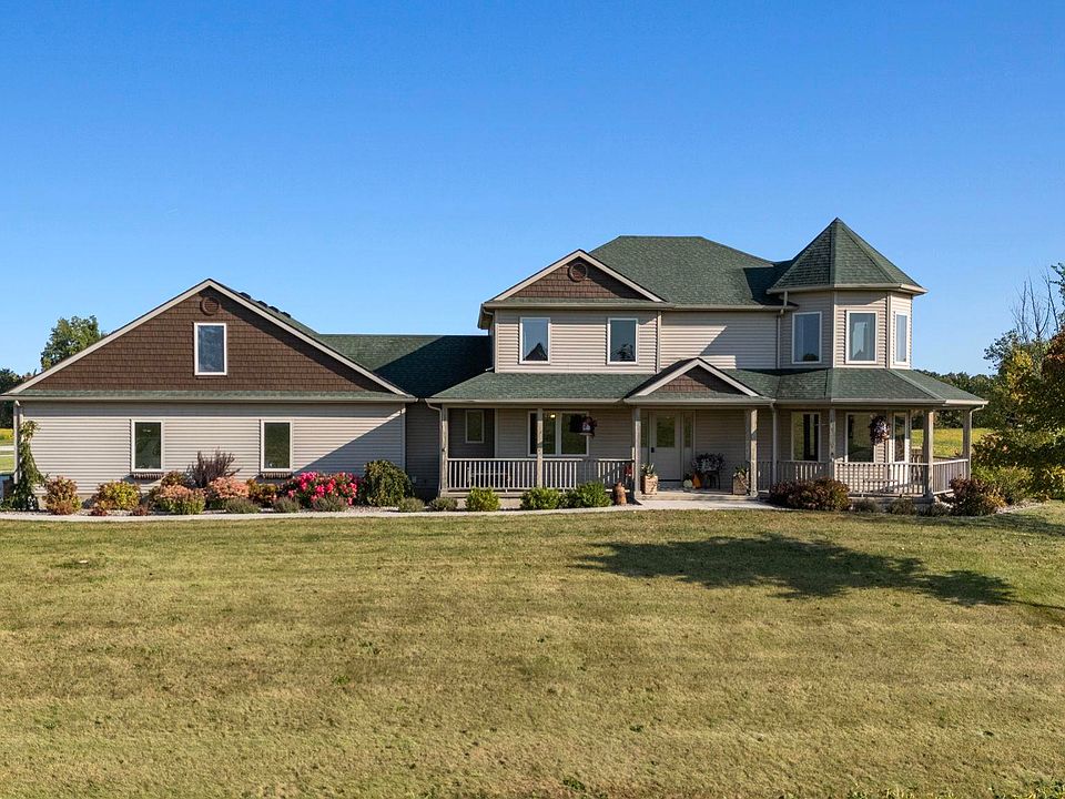 Discover the perfect blend of tranquility and modern living in this stunning farmhouse, nestled on a sprawling 7-acre lot with additional acreage available for purchase. This beautiful retreat offers the ideal escape from the hustle and bustle, yet is just a stone's throw away from local amenities. As you arrive, you’ll be greeted by the warm and inviting covered front porch, perfect for sipping your morning coffee while taking in the serene surroundings. Step inside to find a spacious and thoughtfully designed interior featuring 4 generous bedrooms and 4 modern baths and a craft/den space in the basement, ideal for family living or hosting guests. The heart of the home boasts an expansive open-concept living area filled with natural light, seamlessly leading to a large back deck that invites you to unwind in your private outdoor oasis. Whether you’re entertaining friends, enjoying family barbecues, or simply soaking in the breathtaking views, this deck is the perfect spot for all your outdoor activities.