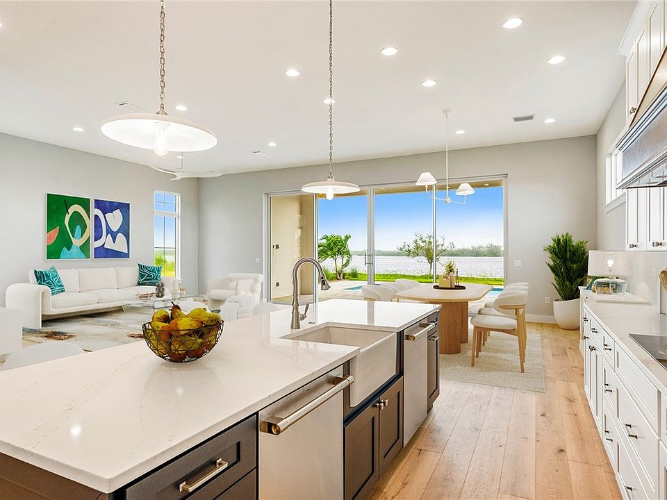 TENNIS, pickle ball, LUXURY clubhouse & OCEANFRONT clubhouse, all at your fingertips. Sip your coffee & watch the sunrise from your riverfront pool. The al fresco riverfront kitchen allows casual dining with friends and family overlooking the pool and river. Concrete block & soaring ceilings with this 4 bedroom, 2 car garage, spacious open concept new build with water views & attention to detail with a luxury home builder. This home has the highest quality finishes, all impact windows & doors.