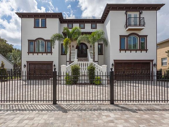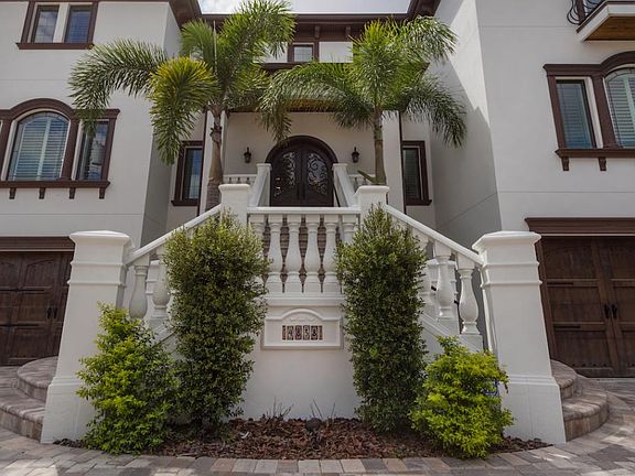 *WATCH VIDEO TOUR* What could be more attractive than a Builder-Owned Mediterranean WATERFRONT custom home, only two lots away from OPEN BAY with DIRECT ACCESS TO THE GULF OF MEXICO and an elaborate outdoor oasis equipped with saltwater, heated pool - boat house w/ lift - zero scape turf and outdoor kitchen This beauty is smart system equipped, w/ option for remote accessing/monitoring and is fully secured w/ automatic gates leading into dual garage parking for 6+ vehicles. The custom features attract the most sophisticated buyers. Hand scraped birch & tumble travertine flooring flow through the house which accent the wrought iron balusters, allowing the crown molding and dramatic ceilings to highlight the stature of this property. The kitchen has beautiful hand crafted & stained cabinets w/ under lit LED lighting with granite countertop. The chefs kitchen includes a 60" Wolf stove, oven & hood, 72" Sub Zero refrigerator, butler's pantry/workstation and wine fridge. Enjoy family time in the comfy family room w/ wet bar, gas fireplace amongst the custom 375 gallon saltwater fish tank. Waterfront office/den accompanies 2nd floor as well. Third floor large master bedroom with his/her custom closets. The En Suite has jetted tub and steam shower. A fisherman\'s paradise with green submersible fish lights, filet table, dock, 15K lift and upper deck all lit with LED lights. New PVC seawall layers concrete and wood seawall, Trex decking. Canal was dredge 2015 for deep water