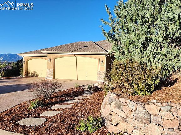 Step into the embrace of luxury & comfort with this captivating open-concept rancher—a true gem in the world of real estate. Boasting 5 bedrooms & 4.5 baths, this residence is a testament to elegance & functionality. As you cross the threshold, beautiful hardwood flooring paves the way, setting the tone for the splendor that lies within. The living room frames awe-inspiring views, showcasing the majestic Pikes Peak and the cityscape. This creates a picturesque setting that perfectly complements the inviting ambiance of the home. The kitchen stands as a radiant hub, adorned w/ stunning granite counters. Modern cabinets & a 6-burner gas range make this kitchen a dream for any culinary enthusiast. This splendid abode features 2 main-level bedrooms & offers the utmost convenience. An office on the main floor provides a perfect workspace for your professional needs. Descend to the basement, which boasts a walk-out feature, unveiling a spacious family room versatile for games, theater, or exercise. The home also features a built-in sound system, elevating your living experience. Step outside onto the back patio where you can savor your morning coffee or unwind with a glass of wine while basking in the stunning views. An enclosed patio with a sunroof provides additional outdoor space, perfect for all seasons. Nestled in a welcoming & cozy neighborhood, you'll relish not only the privacy of your own sanctuary but also the warmth. The oversized 3-car garage accommodates your vehicles & belongings. This residence offers abundant storage options, including a sizable basement storage area that could be easily finished to meet your specific needs. Meticulously cared for & thoughtfully updated, this home exudes an undeniable sense of pride in ownership. Moreover, it offers convenient access to amenities such as shopping, parks, walking trails, & cafes, presenting an exceptional opportunity to embrace a lifestyle of comfort and luxury. Your dream home awaits.