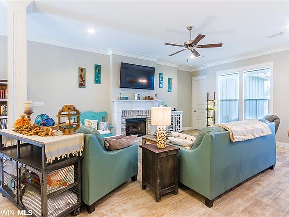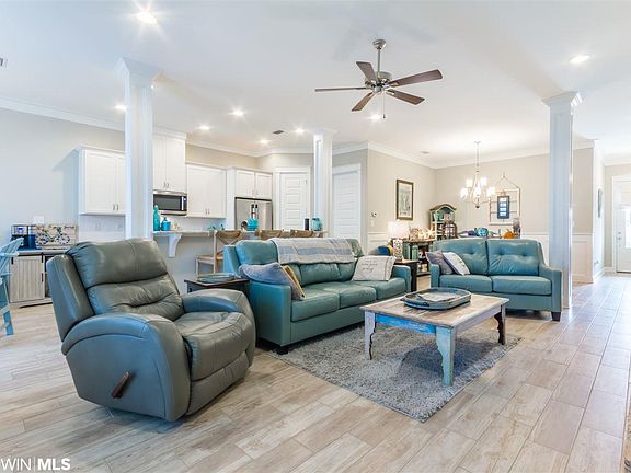 Custom built Coastal Cottage in Cypress Village of Orange Beach. This Gold Fortified 3 Bedroom, 2 Bath Home offers an Open Floor Plan with 10 foot Ceilings, 8 foot Doors, Granite Counter Tops, Stainless Steel Appliances, Custom Painted Cabinets, Wood- Looking Ceramic Tile throughout Living Room, Dining Room, and Foyer. Other Impressive features include Metal Roof, Irrigation System, Large Laundry Room, Huge Pantry, Recessed Lighting, Crown Molding, Paver Patio, Gutters and Landscaped with lovely Palm Trees for the Island Lover within. Community Amenities include a Gorgeous Zero Entry Pool with Lazy River and Water Slide, as well as a Grilling Area perfect for Hosting a Pool Party. This community is Walking Distance to The Wharf Entertainment District, New Orange Beach Middle and High School and many Local Favorites.