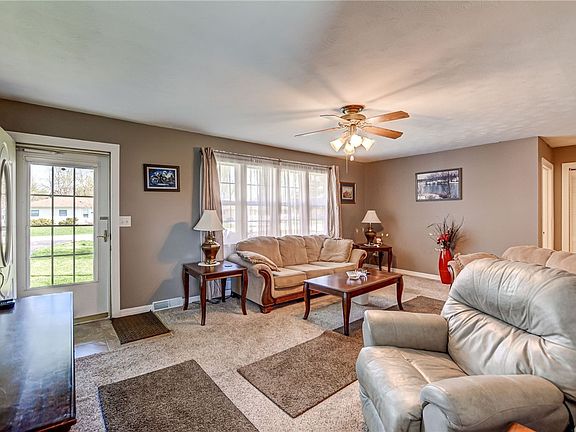 East side ranch ready to call home! This home offers two garages and an extra shed for plenty of storage. Large deck off kitchen area is the perfect place to entertain and take in the quiet. Home backs to fields for plenty privacy. Laundry currently in attached garage but hookups are already in place in bedroom (hardwood floor) for a buyers preference of laundry location. HVAC upgraded in 2021. Property is wired for Robot lawnmower (robot mower negotiable).East in kitchen with new countertops & upgraded cabinets with pantry. Just minutes to shopping and dining!