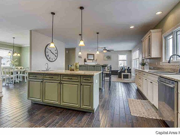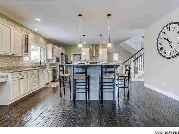 Located in desirable Salem Estates Subdivision in Pleasant Plains school district this stately Craftsman home has all the amenities you've been looking for and more. Inviting main floor features a light and bright living room, private office, dining room, and the best kitchen set up you've ever seen. Dual islands, two sinks, expansive granite counters, walk-in butler pantry with built-in wine fridge, and exceptional views to the green space behind the home. Refinished walkout basement with bar, rec room, mudroom, 5th BR and another large living room. Energy efficient home.