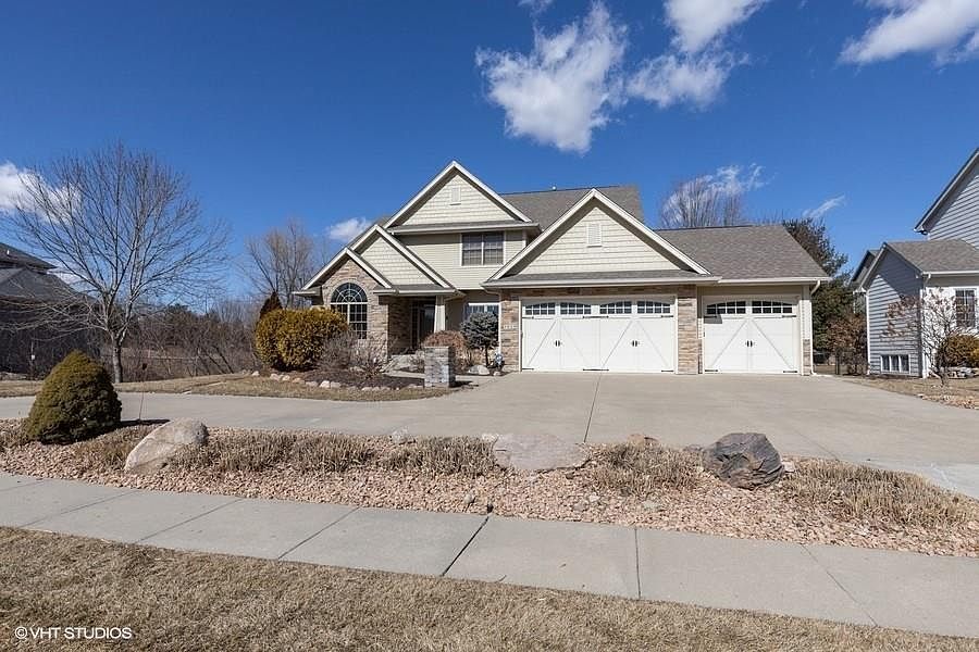 You found it! Sought after Quail Meadows North neighborhood. Quality built by Bill Riley Homes. Ultimate curb appeal & circle drive. You'll feel the custom quality when you walk through the door into a 2 story entry. Main floor has newly refinished & stained solid wood doors, hdwd floors, crown molding, plantation shutters & grand stone FP w/built-ins. Kitchen features center island, tons of cabinets & high end Kitchen-Aid appliances. Mudroom w/laundry, pantry shelves & charging station. Office/Library to front w/cathedral ceilings & wall of shelves. Master has ample space, trey ceilings, BA suite dbl/vanity, tile shower & soaker tub. 3 add'l BRs, full hall bath plus a jack & jill. Lower level has 5th BR, 2nd family room & tons of storage. Freshly painted walls throughout most of the home. The landscaping is superb, abundance of flora & fauna, prairie grass, multiple berms, waterfall & babbling brook. Fenced yard & Huge deck. All information obtained from Seller & public records.