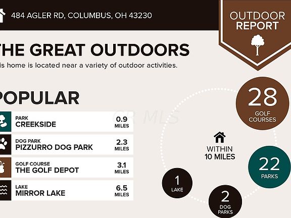 Welcome home to 484 Agler Rd in highly desirable Royal Manor which is near Creekside Park & downtown Gahanna. With a convenient location close to highways & local amenities, this ranch style home is over 1200 sq ft on .33 acres & move in ready. The entry level features a spacious family room, living room, dining room, updated kitchen w/ quartz countertops & stainless steel appliances, laundry hookups, 3 bedrooms including a primary w/ en suite full bath, and a well-appointed full hallway bath. Outside you'll find a covered patio, fenced in backyard ideal for entertaining, storage shed, and an attached 1 car garage. A MUST SEE! Owner/agent. See A2A.