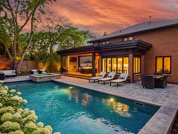Welcome to beautiful 484 Aspen Forest Drive. This elegant 4+1 bedroom, 4 bathroom executive home has been meticulously updated top to bottom, and sits on a professionally landscaped lot in Oakville's prestigious Ford Eastlake neighborhood. The highlight of this home is the spectacular private backyard - your own slice of paradise featuring a saltwater pool alongside a covered lifetime deck with gas fireplace and outdoor TV, perfect for entertaining. The integrated hot tub, professional landscaping and inground irrigation, add the perfect finishing touch to this outdoor sanctuary. Step inside to discover a warm and inviting space, featuring an updated eat-in kitchen, that opens directly to your backyard paradise. Spacious dining and living areas, plus a main floor laundry room and walk-in access from the garage complete this level. Upstairs, the spacious primary bedroom suite includes a luxuriously renovated spa-like ensuite, three additional bedrooms and a beautifully updated main bathroom. The finished lower level adds incredible versatility with a sizable recreation room, 4 pc bath, and large bonus room - perfect as home office, fitness space, or fifth bedroom. Located in the coveted Ford Eastlake community, you'll enjoy proximity to top-ranked schools, beautiful parks and ravine trails, convenient transit connections, and access to Oakville's premium downtown shopping area. From the stunning backyard oasis to comprehensive interior updates on every level, this move-in ready gem delivers style, functionality, and prime location ready for you to make your own dreams come true and create lasting memories from day one.