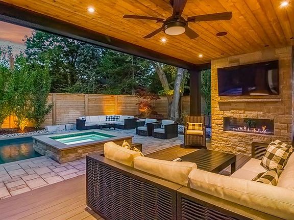 Professionally landscaped lotSpectacular private backyardSaltwater poolIntegrated hot tubProfessional landscapingInground irrigationUpdated eat-in kitchen