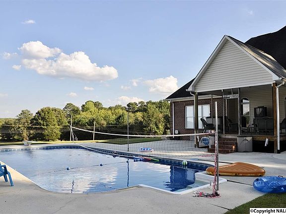 This home is pleasantly situated on 4.11 acres, with a view from the pool of the beautiful Guntersville lake, as well as the "lighthouse home" on the lake. The saltwater pool has a new liner and a new pump.The kitchen offers a jenn-air gas cooktop with whirlpool oven, microwave and dishwasher bought new just a few months ago and also solid surface countertops. You'll enjoy the 9' ceilings, the beautiful hardwood floors and the large back porch, as well as the large family room upstairs and the bonus room upstairs too. This home features a brand new gas tankless hot water heater, crown molding, beautiful entry with a stamped concrete walkway. Call now for a private showing of this pretty home
