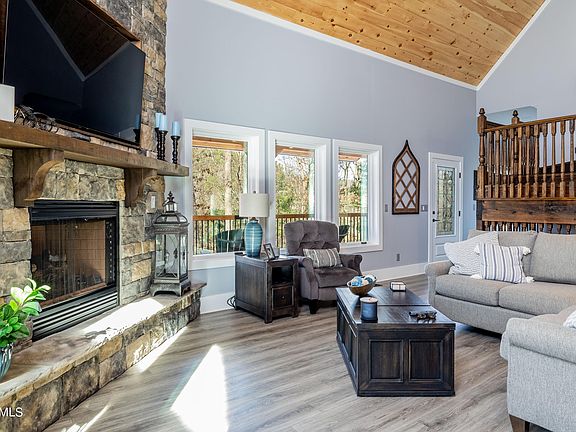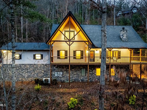 Enjoy the seasonal mountain view while relaxing on the covered porch of this practically new, custom built home in Kinzel Springs. Kinzel Springs is a premier gated community located only moments from the entrance to the Great Smoky Mountains National Park, yet convenient to Maryville and the airport. Amenities of Kinzel Springs include a 2.5 acre stocked lake, pavilion, walking trail with covered bridge, underground utilities with public water and sewer, cable TV and high speed internet. The spacious living room/kitchen is the perfect place for families to gather around the stone fireplace soaring two stories to the cathedral ceiling. The island bar with granite counter top distinguishes the kitchen area from the living area. This open floor plan is ideal for entertaining with atrium doors leading to the wrap around covered porch. The owner's suite features a trey ceiling with wood accents, a stone lined walk-in shower with full body wash jets, a deep soaker tub and large walk-in closet. You can also step through atrium doors from the ensuite onto a private patio to enjoy your morning coffee. The fun continues downstairs with a large bonus room, complete with wet bar, free standing wood-burning stove and pool table. The pool table has leaves that turn it into a large dining table for large gatherings. Stroll through atrium doors to another private patio with a fire pit. You will also find a 2nd bedroom with full bath and office on the lower level. Upstairs there is a large loft area overlooking the great room and 3rd bedroom with bath.