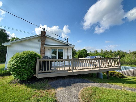 Uniquely designed ranch with fully finished lower level that includes a large family room with free standing gas stove, separate utility rooms and large craft/exercise room-could be a 4th bedroom! Walk right out the lower level to the oversized 2 car garge, in-ground pool and country backyard. Main floor has a newly renovated eat in kitchen and dining area with open sight line to living room. Sliding door to deck is right off the dining area and brings in wonderful light! Many upgrades and very well maintained...and a short walk to the ice cream stand!!!