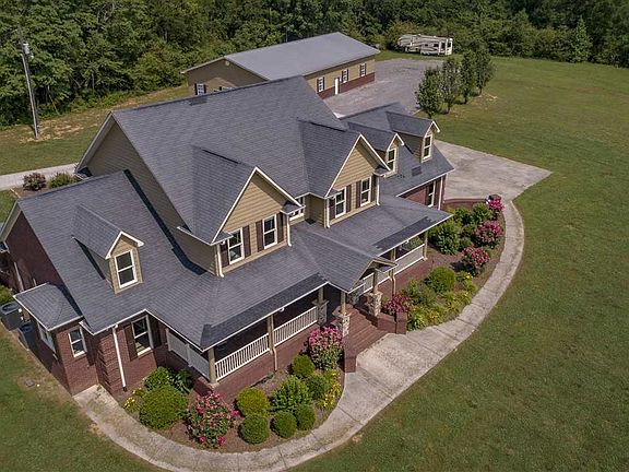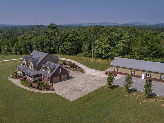 Executive Style Full Brick home with all the amenities - over 15 Gorgeous acres with AMAZING VIEWS of Mountains and Lakes. Full Concrete Drive. Large Covered Front Porch and Back Porch Veranda area! Main house features open floor plan, beautiful moldings, fireplace, Office, Master Suite with Seperate Baths for Him and Her! Upstairs with 3 BR, baths and bonus REC ROOM. Guest House features 2 bedrooms, kitchen& liv. area. Workshop is usuable as an additional Garage workshop,plus a Dog grooming/boarding facility is avail. A MUST SEE! Call for your appointment!