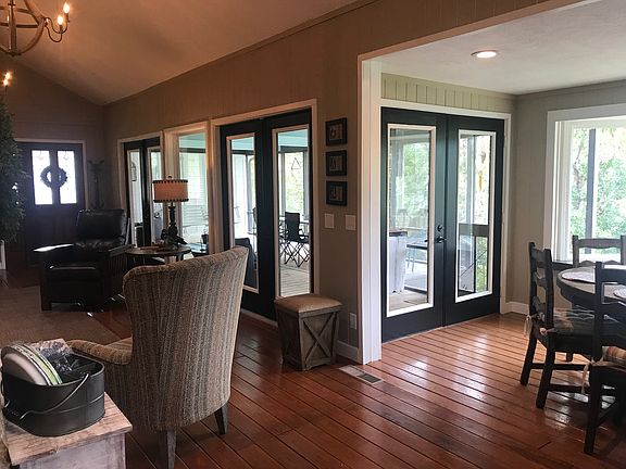 Attached carport w/ample parking space. Home is situated on Yellow Creek with so many lake front extras and landscaping one only wishes for etc...concrete drive & board walk, rock work, outdoor fireplace and conversation area. Irrigation and low voltage LED lighting make for a beautiful landscape. Custom boathouse with ample storage for boats and jetskis. Sound system throughout the property from the water to the front of the house controlled from anywhere on the property.
