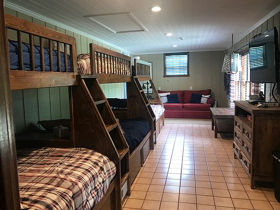 'THE LAKE HOUSE' on the banks of Weiss Lake. 4 bedrooms, 3 & one half baths, arranged in a open-concept floor plan. Entire back of the home features panoramic lake views, including a screen porch to enjoy your view! This space is IDEAL for Lake-living! Main living on lower level, including master suite and bunk room. Bunk room has custom bunk beds and storage under them. Up-stairs has two bedroom and shared bath. Lots of custom detail in this home. With water all year long this home is in the perfect spot on the lake.