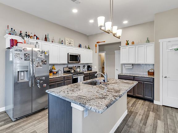 Beautiful Stucco Home built in 2022. Better than new! Fully landscaped and fenced with PVC fencing. 3 bedrooms, 2 bath, 2 car garage. Open concept with vaulted ceilings. Kitchen has granite counter tops, island, gas stove and all stainless appliances are just a few of the beautiful features of this gorgeously done home.1-4 pc bath in primary bedroom with a walk-in shower. House sits at end of street therefore you won't have much traffic. Patio is on the east side so great for morning coffee and evenings in the shade. Brand new shed stays. Come check it out! You will fall in love!