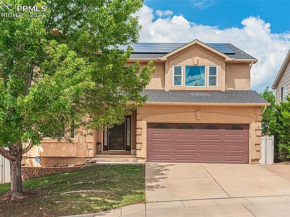This beautiful 5-bedroom, 3.5-bathroom, 2-car garage stucco home in the Southwestern Gold Camp Park neighborhood of CO Springs is just minutes from EVERYTHING!! It sits amongst many amenities, sits at the rolling foothills of Pikes Peak, and is within walking distance of Bear Creek Regional Park, with its 25-ac dog park, equestrian skills course, community garden, sporting areas, and 10 mi of multi-purpose trails. It’s located between Old Colorado City, downtown Colorado Springs, and The Broadmoor Resort, which hosts the Cheyenne Mountain Zoo and the Seven Falls attractions. Minutes from Stratton Open Space and Red Rock Canyon Open Space, with hiking and mountain bike trails, and walking distance to the Norris Penrose Event Center. This property includes solar panels on the roof, 33x new Ameritech triple-pane windows, motorized sunshades, a new furnace, a new hot water heater, a new whole-house humidifier, a new roof, a composite deck with a new motorized retractable awning, and a walkout basement. Head inside to a study, formal dining area, and wet bar. The open living area has high ceilings, two walls of windows with mountain views, a cozy stone-accented fireplace, and access to the back deck. The kitchen offers great space, tons of cabinetry with pull-out shelves, an eat-in kitchen area with a new garden window, and new stainless appliances. The laundry/mudroom has a washer, dryer, and sink, and leads to an oversized 2-car garage with built-in storage cabinets. Upstairs features a loft area with built-in desk space, two bedrooms, a full bath, and a master suite. The master suite includes a fireplace, built-in bookcase, a large walk-in closet, a master bathroom with double sinks, a tub with mountain views, and a standing shower. In the basement, you'll find two bedrooms, a full bath with a standing shower, a soaking tub, a storage/craft room, and a shiplap accent wall with new flooring. The basement walk-out leads to a patio area, with zero-scape and grass areas!