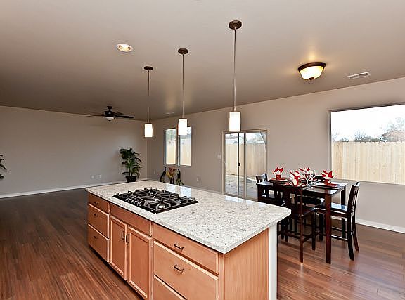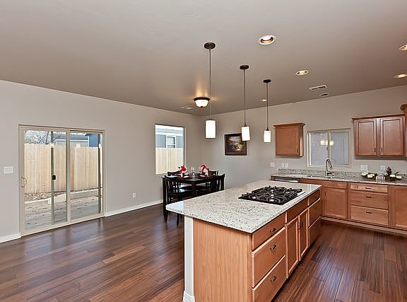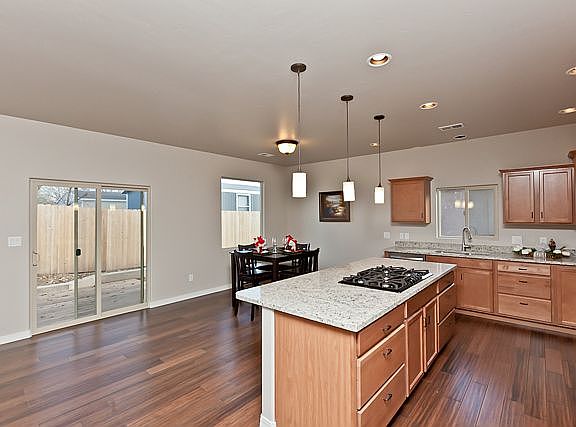 Wonderful Fruita ranch style home with 4 bedrooms, 2 baths, 3 car garage AND RV parking. Such a comfortable feel and layout with split bedroom design and open floor plan featuring a beautiful chef's kitchen with 8' island, stainless steel appliances, double convection wall oven, gas range with vent hood, pendant lighting, and pantry. Many updates including granite slab countertops throughout, engineered hardwood flooring, tankless water heater, wi-fi enabled thermostat, 9' ceilings, ceiling fans in all bedrooms and living room, and spacious main bedroom with 5-piece bath, jetted tub, walk-in tiled shower and walk-in closet. Enjoy easy living with low maintenance xeriscaping, automated sprinkler system in front and backyard, deck, and concrete flagstone patio. This home is like new and move in ready. Close to schools, hospital, and Fruita rec center. Call today!