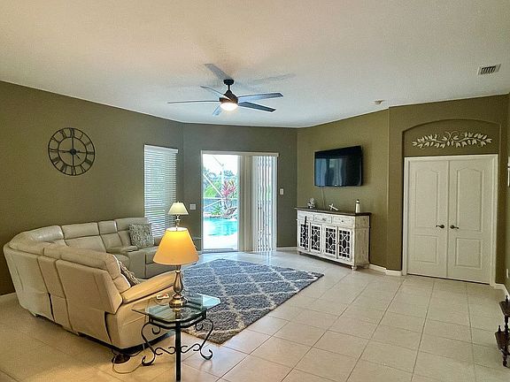 Welcome to this immaculate St. Croix Courtyard POOL home! This beautifully-maintained 3 BED 3 BATH residence is a MUST TOO SEE! You will fall in love with the resort-style floor plan, where your waterfront backyard becomes your own private tropical oasis! Recently upgraded KITCHEN, complete with a QUARTZ Island and countertops, with built in\pull out shelves in pantry & Breakfast Nook! No carpet in main part of home - brand new wood floors in master and extra bedroom . The Primary Bedroom has 10 Ft. ceilings holds a beautiful view of the pool & lake. There is a spacious Office/Studio that can easily be converted to a 4th Bedroom if needed. The GUEST SUITE includes a separate entrance, FULL BATH and Glass Sliders that lead directly to your screened outdoor lanai! Bedrooms, bath and office has been freshly painted within the last year as well as new light fixtures. Exterior dusk to dawn lighting the back of home. The LOCATION cannot be beat ! Very CONVIENENT TO EVERYTHING !! This home will not disappoint! Owner is a licensed REALTOR and will cooperate with REALTORS. Call TODAY to see this one.