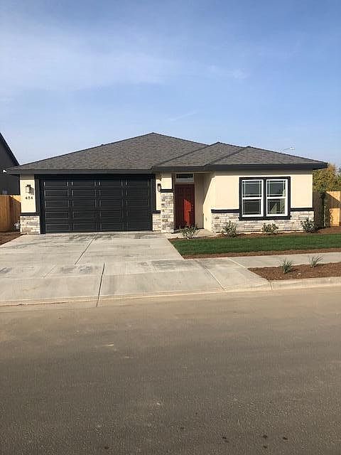 This is a 3 bedroom 2 bathroom open floor plan with vaulted ceilings in the living room. The kitchen features an island and pantry for ample storage. There's also an indoor laundry room and a covered backyard patio.