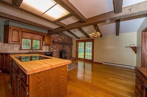 This unique Mulit-Family Cape is absolutely amazing! Not only does it feature 2 spacious units, but a enormous barn style garage as well. Each unit has a warm look and feeling from the fireplace surrounded by classic brick and hardwood floors. Wood beams, skylights and an abundance of space awaits you in this one of a kind opportunity. Unit 2 is and has been rented to family. Previous rent was $1500/mo.