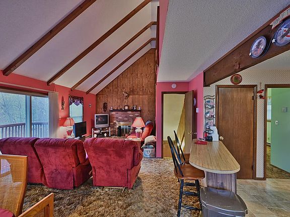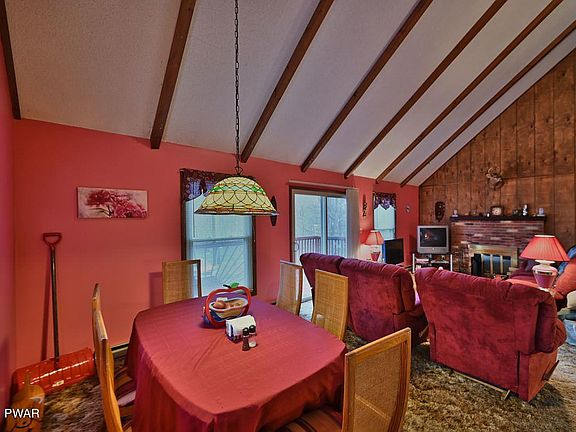 Located within walking distance to the marina in a four season amenity filled community in the Northern Poconos just two hours from the NYC and Philadelphia Areas. This saltbox home has three finished levels, an open floor plan, brick fireplace, high ceilings, a family room in the lower level. Great location near the lake. The amenities include lakes, beaches, pools, clubhouse with restaurant and pub, golf course, ski hill, tennis, indoor recreation complex with tennis/fitness center/arcade and more, basketball courts, ball fields, children's playground, miniature golf, walking trails, arts and crafts, a great recreation program including day camp for kids, campground, 24 hour security, gated access, must have an appointment with an agent to tour the community.