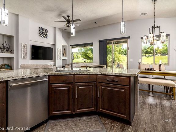 Beautiful East facing Golf Course View Reserve home On the 3rd hole of the Falcon Ridge course features the following: Enjoy this beautiful home starting in the backyard dipping in your inground pool & spa overlooking the 3rd hole of the Falcon Ridge course with easterly views and enjoy the great Mesquite evenings around your custom built-in firepit & BBQ, This home also features a gas stove in the kitchen, raised panel Knotty alder cabinets throughout the home. Upgraded pendent kitchen Island lights, Granite throughout, beautiful dining area overlooking the outdoor pool & golf course. This home also features soft water & R/O system, Landscaped front & back, Fully fenced backyard, Walk-in kitchen pantry with lots of storage, Custom Iron front door that has a middle opening for extra airflow that you will see in the photos provided, The garage has been extended to 27' length & 19' wide, Beautiful tiled showers in bathrooms, 37' covered patio full length of the house, Furnishing package available with this property and much more....