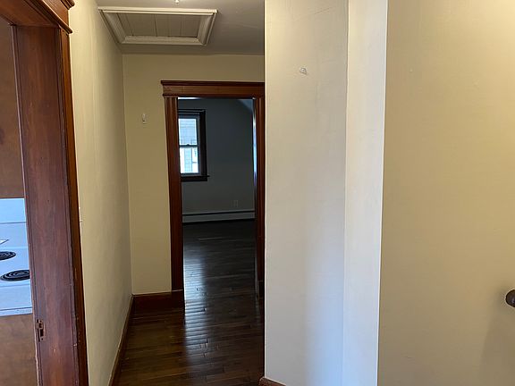 Third Floor, One bedroom apartment, bathroom with tub/shower, eat in kitchen with refrigerator & electric range, living room, laundry hookups, two car off street parking, Gas heat, Gas Hot Water. One year lease, tenant pays all utilities, application with credit/background required, fee paid by applicant, pets allowed with restrictions. NO Smoking
