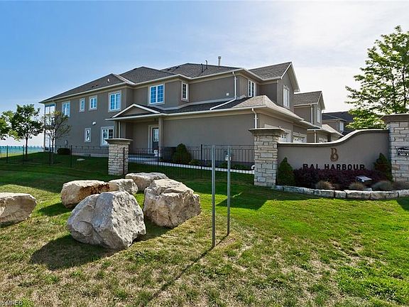 *See Video Tour!* Luxurious lakefront living! Exceptional & unique end-unit bungaloft featuring 3050 sq ft in an incredible open concept single level layout on the 2nd storey. Two storey entrance foyer with private elevator & beautiful contemporary glass railing staircase lead to the expansive main level living space with magnificent & endless panoramic lake views from all principal rooms. Approx $300,000 spent on a full top to bottom renovation in 2019 with the finest of top quality finishes & designer decor. Spectacular white chef's kitchen with extended height shaker cabinetry, 11 foot wide island w/stunning leathered granite waterfall countertop, professional series stainless steel appliances & wine cellar opens onto a massive 30 foot great room with impressive stone fireplace, walk-out to covered terrace & breathtaking views. Double doors lead to a 5 star hotel style master bedroom suite with 2nd walk-out to the terrace, beautiful spa inspired en-suite with soaker tub & frameless glass shower along with a spacious walk-in dressing room with custom built-ins. A 2nd bedroom is located at the other wing of the home to offer greater privacy & is complemented by a gorgeous 3 piece bathroom. There is also an unfinished basement with bathroom rough-in, and the private elevator serves all levels. Double car garage w/direct interior access & total parking for 4. Outside you'll be able to enjoy 100 ft frontage of exterior property, private boardwalk & beach. This is the largest floor plan at Bal Harbour & most preferred upper end unit. A perfect home for ease of lifestyle yet without compromise to quality and size. Only minutes to amenities and a short drive to Toronto. This is luxurious waterfront living at a fraction of the cost of nearby Burlington. Come and see for yourself how fabulous this property is, and how every day will feel like you're in the Caribbean as you take in the marvellous lake views from your piece of paradise on the waterfront.