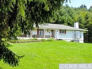 Beautiful location, views in every direction, open and wooded, lovely pond, stone fireplace. Large kitchen with lovely views, open to dining and living rooms. Living room has stone fireplace, dining room has sliding doors to a deck. There are three bedrooms in total, two full baths (master bedroom has half bath). The lower level has garage and utility area, potential for a family room and full bath or an income apartment, whatever suits your needs. Located near Windham Mt. and all amenities. Needs some foundation work, priced accordingly.