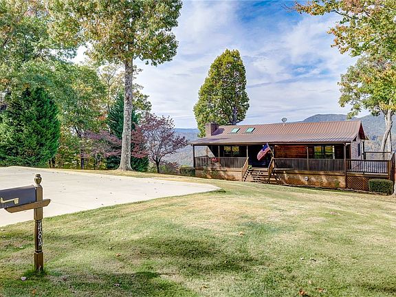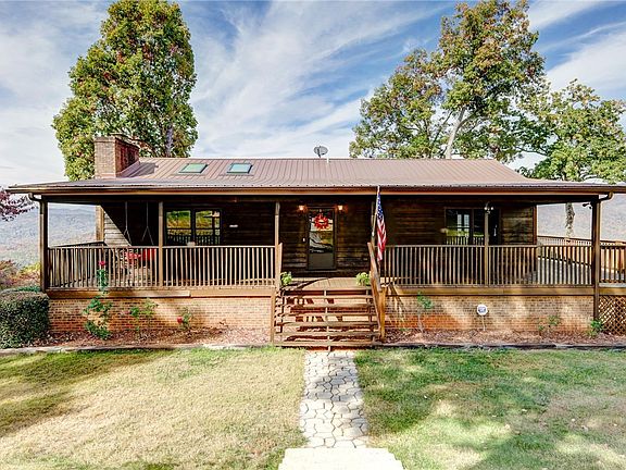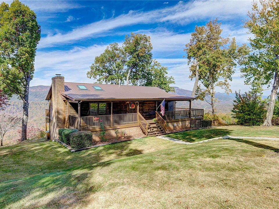 You will immediately see why this one is named "Breathtaking Falcon's View". It is almost impossible to concentrate on this classic style home when you have most of the doors and windows boasting nature's art show. There are twenty nine mountain labels that pop up on the Peak App that you can enjoy from the back deck. Starting your house tour, you're welcomed by a relaxing swing to your left and the right side deck will entice you back to the covered porch. A traditional foyer leads you into the vaulted 19x12 living room that offers a stone fire place. Custom wood built-ins separate the new granite covered counters in the island kitchen. A shiny new black smooth cook top is eager to be used. The window over the sink, solar powered blinds in the sky lights, perfectly positioned dining area, are just a few perks to this happy and open floor plan. In the hall is the half bath, could be a main level laundry room to the left and the staircase that can be closed off if downstairs is used for guests. At the end of this hall is the massive owner's suite. It's 13'5" x 27'3", with two walk in closets, private slider door to the back deck, two ceiling fans, double sinks in the owner's bath, built in mirrored make up vanity, traditional one piece tub/shower unit and linen closet. Downstairs your friends and family can enjoy their stay by having their own bonus room, living area, laundry room, kitchenette, dining area, full bath, two bedrooms and the last room on the left could be a windowless bedroom or an office. A nice surprise is the CarbonFlex Sauna by Saunatec that is in place downstairs. The driveway goes down to the lower level entrance and the back patio area with extra parking for your guests. Associated Documents have the Mountain ID photos. The views are a must see!