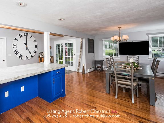 Forget the cookie cutters.... this truly unparalleled home was designed for easy living with a transitional style floor plan built for entertaining. Featuring custom designed kitchen with modern two color cabinetry, stainless steel appliances, concrete countertops and breakfast bar perfect for coffee and a laptop as well as a separate dining area. Living area with beautiful exposed beam to highlight the soaring ceiling and chateau design with gleaming hardwood floors, large fixed french door to the patio combining the indoor/outdoor living space. Master suite offers ample closet space. Finished lower level adds excellent additional space for whatever your needs. House is wired for a portable generator for easy New England living. Large back yard with stone wall, built-in firepit area and a tree lined screen of privacy. Tons of parking, two car garage and just minutes to major routes, shopping and entertainment. Come and take a peek. You'll be glad you did.