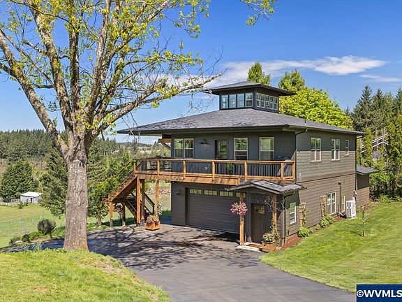 Experience the best of town and country living in this modern 2017 construction house. Situated on a small acreage just outside the urban growth zone, this craftsman-inspired farmhouse offers breathtaking views, a massive covered porch, and a 360-degree view cupola room. The property features fruit trees, a strawberry patch, and raised garden beds. With energy-efficient amenities and solar-ready options, this home is designed for sustainability. Truly a rare find! Swing by the Open House Sunday 6/4 1-3pm!