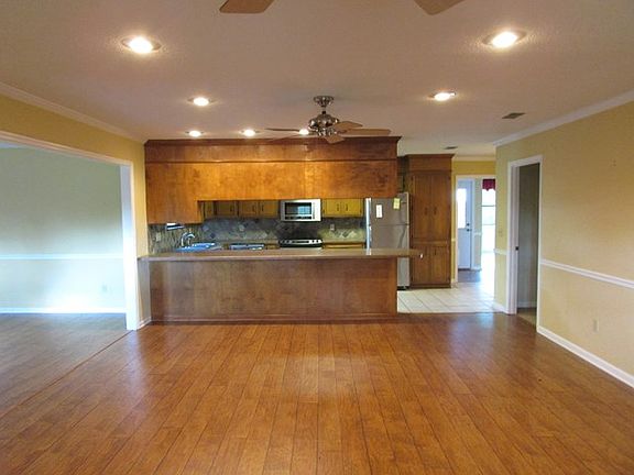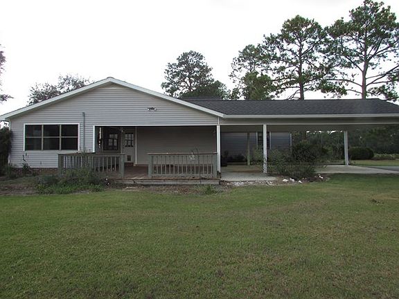 2 BR, 2 BA home nestled in a country setting surrounded by mature landscaping with assorted shrubbery, flowers, pecan trees and pine trees. Scenic driveway that leads to a 2 car carport and inviting deck entrance with half covered overhang. Home is equipped with an abundance of storage. Large family room with brick fireplace, built in wall unit, recessed lighting and laminate flooring. Separate dining room, tiled floors with lots of windows and storage closet. Kitchen has lots of upper and lower cabinets, pantry with roll out shelves. Tiled floors and all stainless steel appliances complete the look of the kitchen. Master bedroom has a walk in closet and carpeted floors. Master bath has a shower and vanity with storage. The large room at the rear of the home can be used for sunroom, entertainment room or bedroom. Lots of windows and a closet makes it versatile. Laundry room has wall to wall storage cabinets and drawers with a large utility sink. Two storage buildings and a greenhouse.